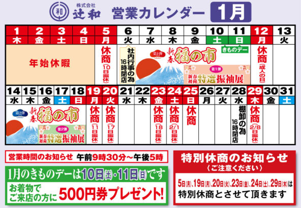 令和8年1月の営業カレンダー
