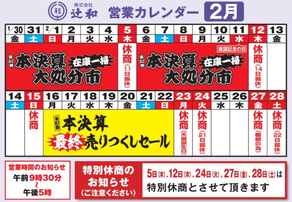 令和7年2月営業カレンダー